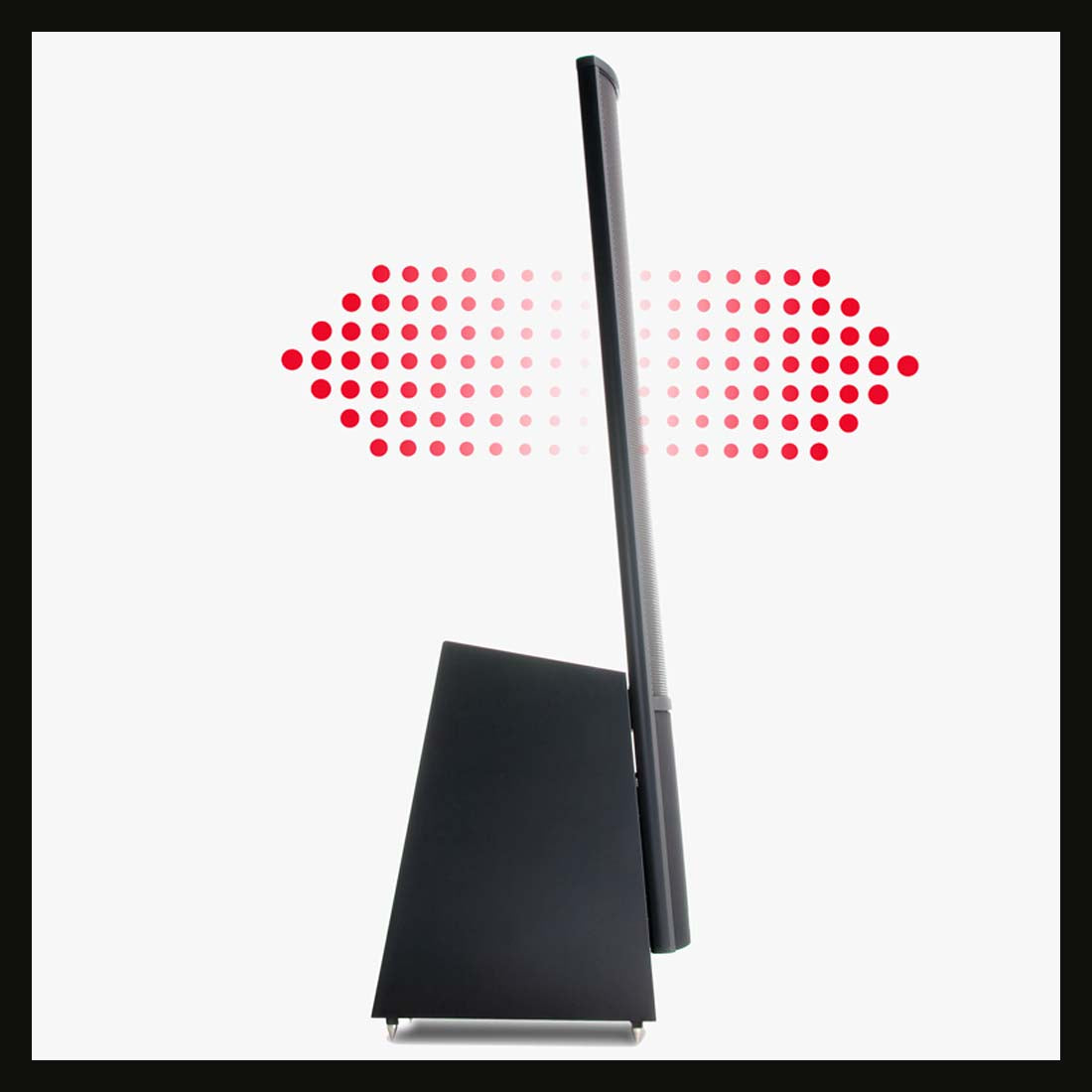 La technologie AirFrame confère une rigidité au panneau électrostatique sans entraver sa surface de reproduction sonore ni perturber le rayonnement dipolaire caractéristique qui enrichit l'ambiance acoustique.