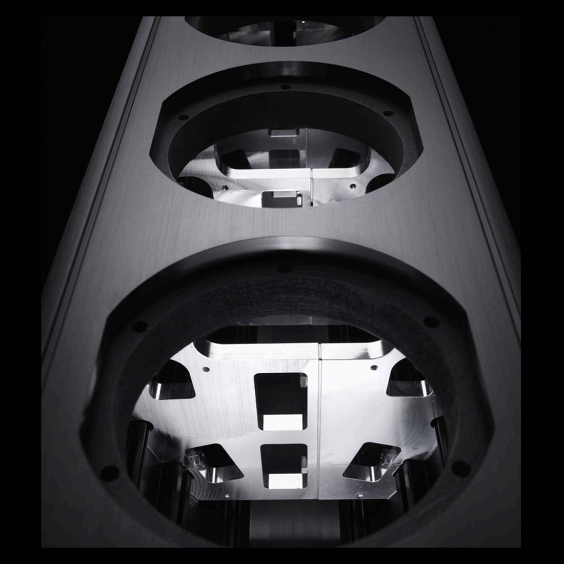 L'aluminium, en raison de ses propriétés acoustiques remarquables et de son esthétique élégante, est le matériau de choix pour la construction des enceintes.