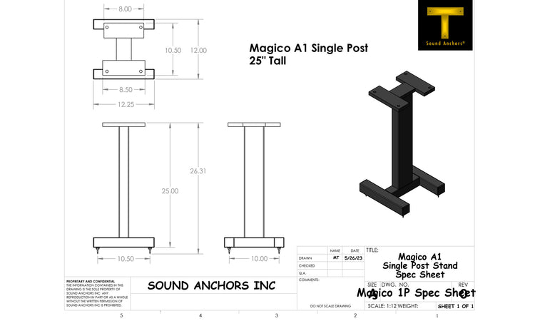 Les supports pour enceintes Sound Anchors conçus pour la MAGICO A1 sont des accessoires haut de gamme, conçus pour garantir une stabilité exceptionnelle et une performance acoustique optimale.