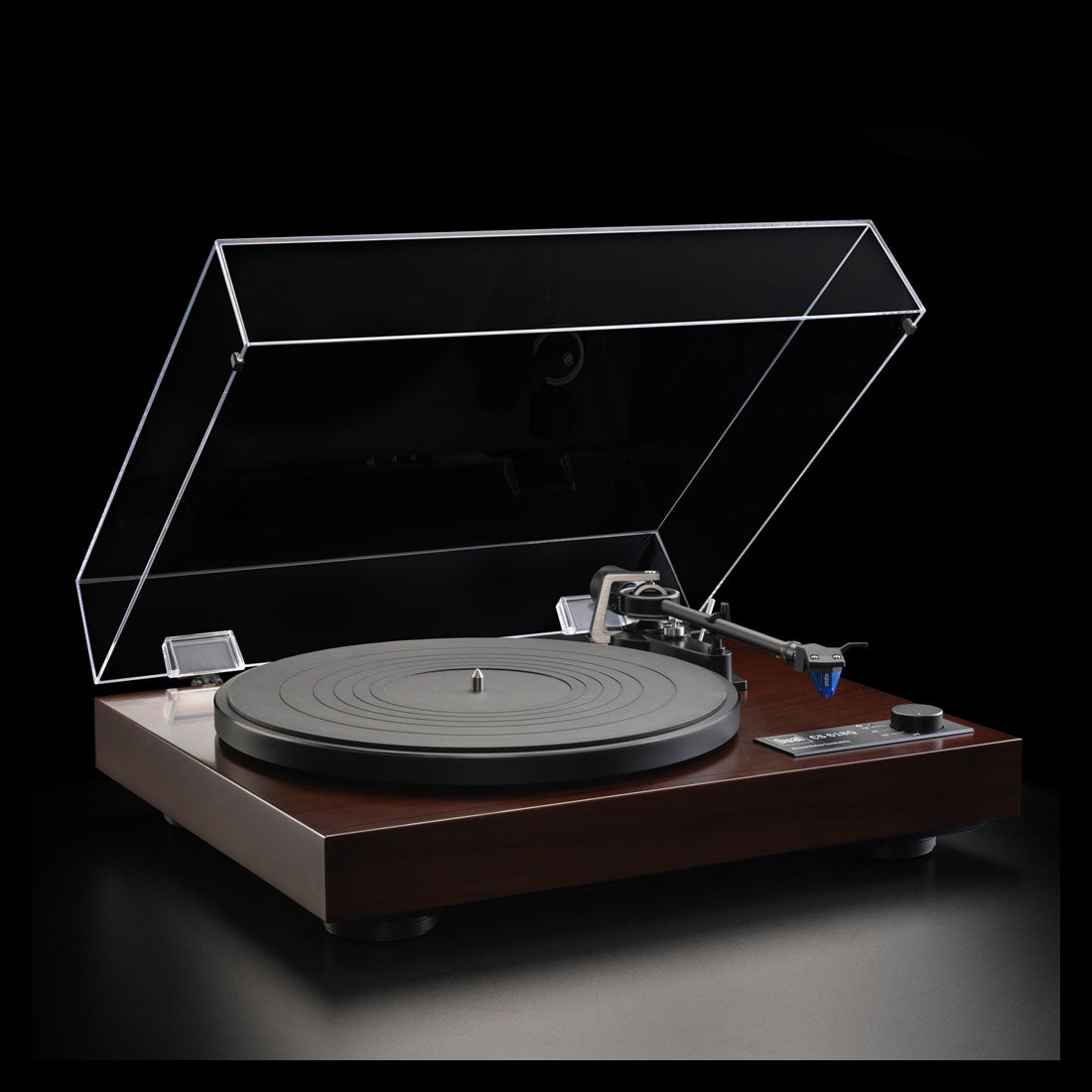 Son plateau en aluminium moulé sous pression assure une rotation régulière, renforcé par un couvre-plateau en caoutchouc épais limitant les résonances.