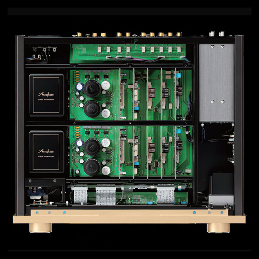 Le principe AAVA (Accuphase Analog Vari-gain Amplifier) élimine toutes les résistances variables sur le chemin du signal.
