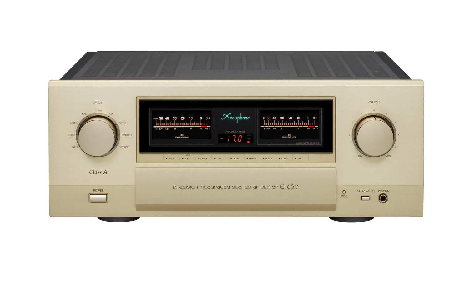 L'E-650 utilise un potentiomètre de volume motorisé de haute précision pour un contrôle précis du niveau sonore.