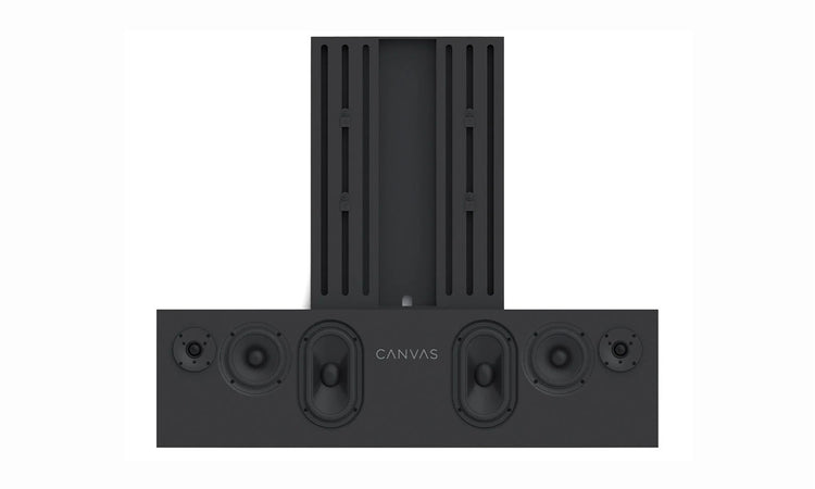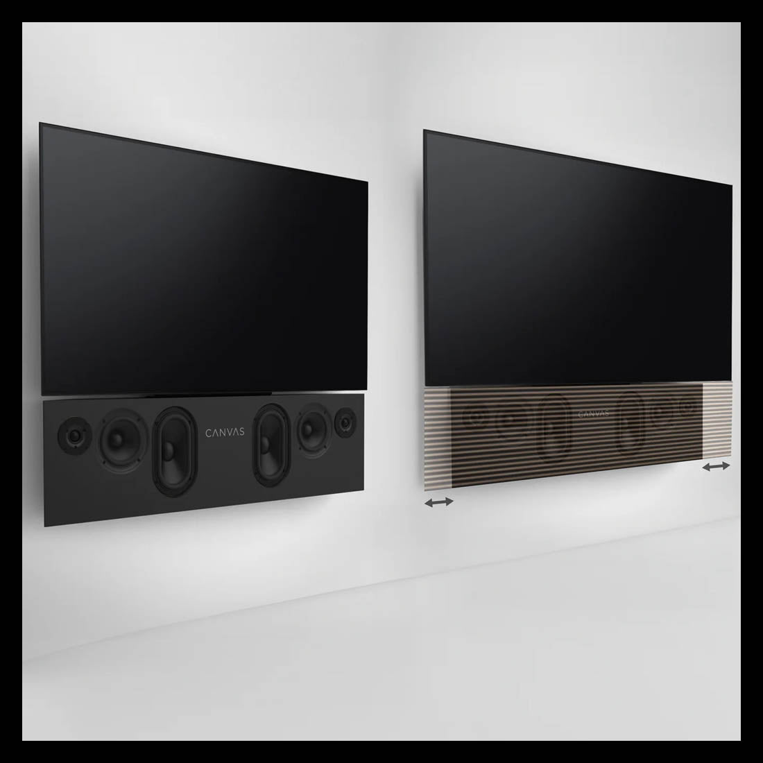 Il permet un alignement précis avec la barre de son CANVAS, grâce à des grilles avant ajustées à la taille de l’écran, garantissant une installation homogène et sans interstice visible.