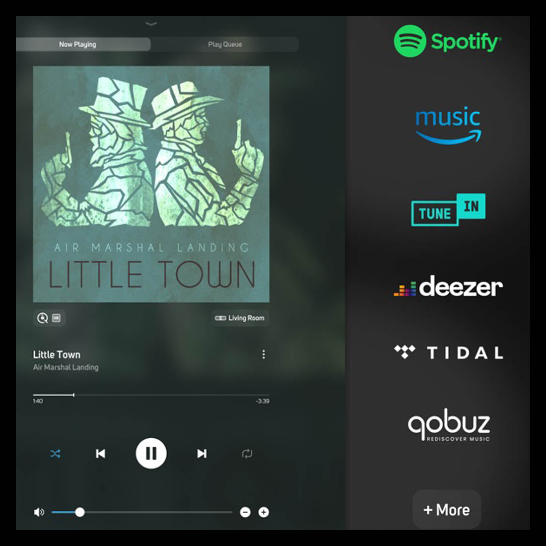 L'application BluOS Controller, compatible avec iOS, Android, Mac ou PC, vous offre la possibilité d'accéder à une vaste sélection de stations de radio Internet, une variété de services de musique en streaming ainsi qu'à vos playlists.