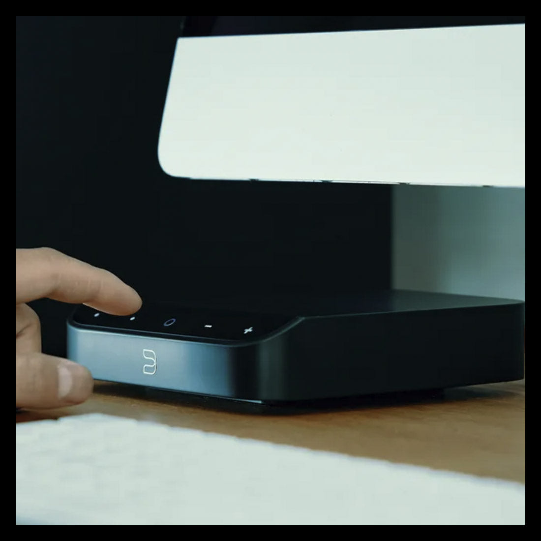 Le Bluesound Node Nano allie discrétion et praticité grâce à son format compact, permettant une intégration harmonieuse au sein de n’importe quelle chaîne hi-fi.