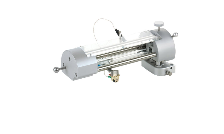 Son guidage mécanique repose sur deux roulements à sec de haute précision et un tube en verre poli, minimisant la friction.