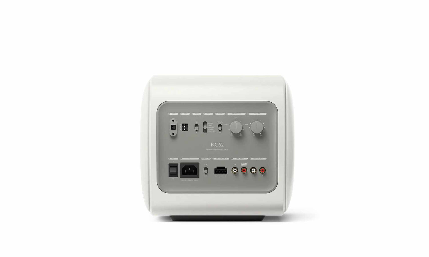 Grâce à l'ingénierie avant-gardiste de KEF, qui intègre la technologie révolutionnaire Uni-Core®, le KC62, avec des dimensions similaires à celles d'un ballon de football, est équipé de deux haut-parleurs de 16,5 cm à annulation de force, alimentés par une puissante amplification de classe D de 1000 W RMS.