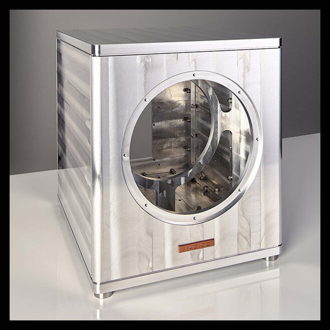 Son boîtier en aluminium renforcé, son cône ultra-rigide en aluminium, son amplification intégrée, son filtre électronique et son centre de contrôle DSP font partie intégrante de cette conception haut de gamme signée Magico.