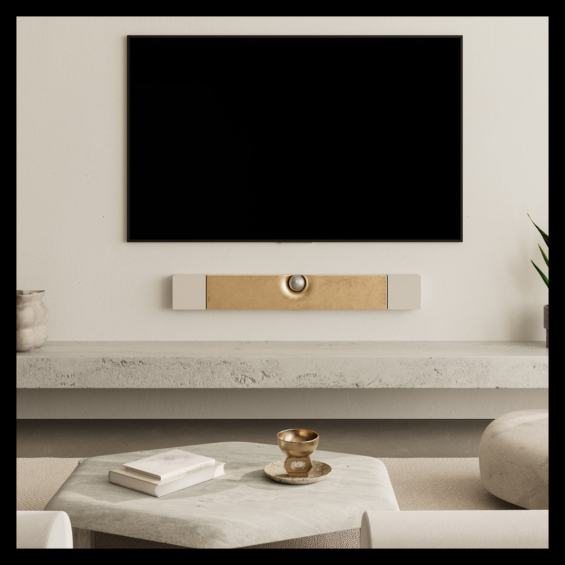 Cette version de la barre de son Devialet devient une pièce décorative autant qu’un équipement audio.