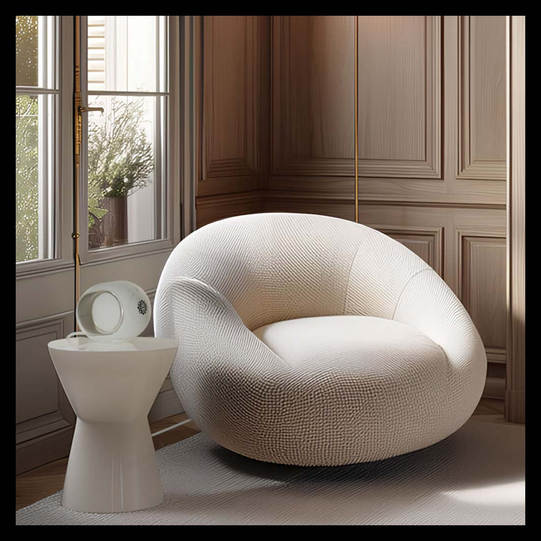 Son design aux courbes fluides et sa finition Light Pearl lui permettent de se fondre dans une décoration contemporaine tout en affirmant une présence visuelle unique.