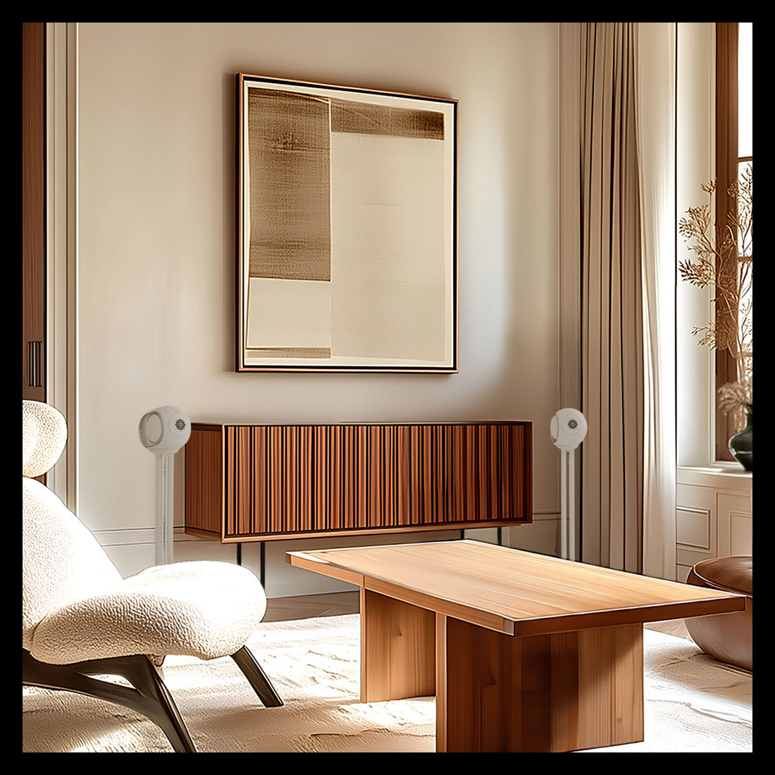 Installée dans un salon moderne, une bibliothèque ou une pièce plus classique, cette enceinte connectée devient naturellement un point focal, un objet qui fascine autant qu’il décore.