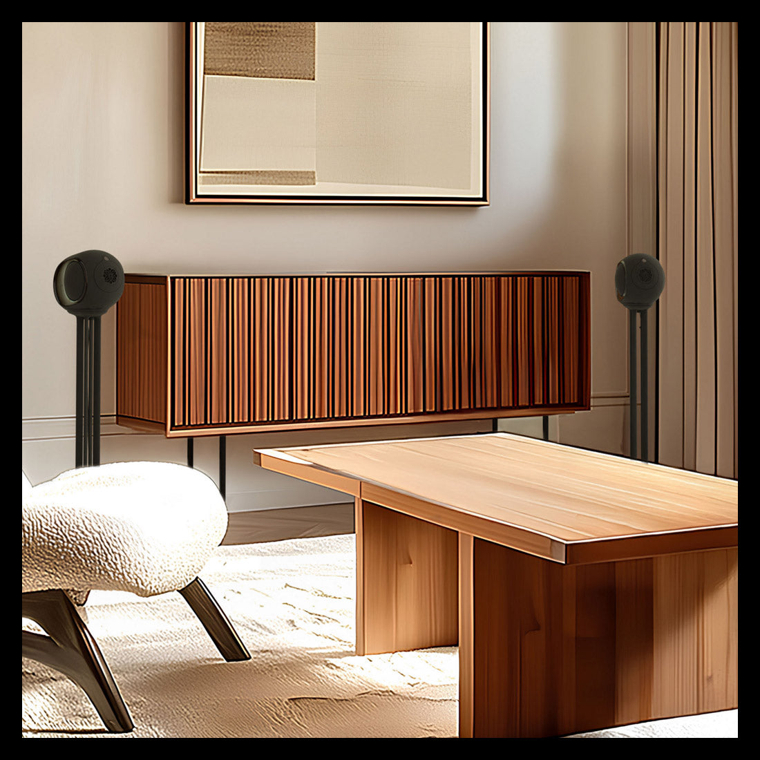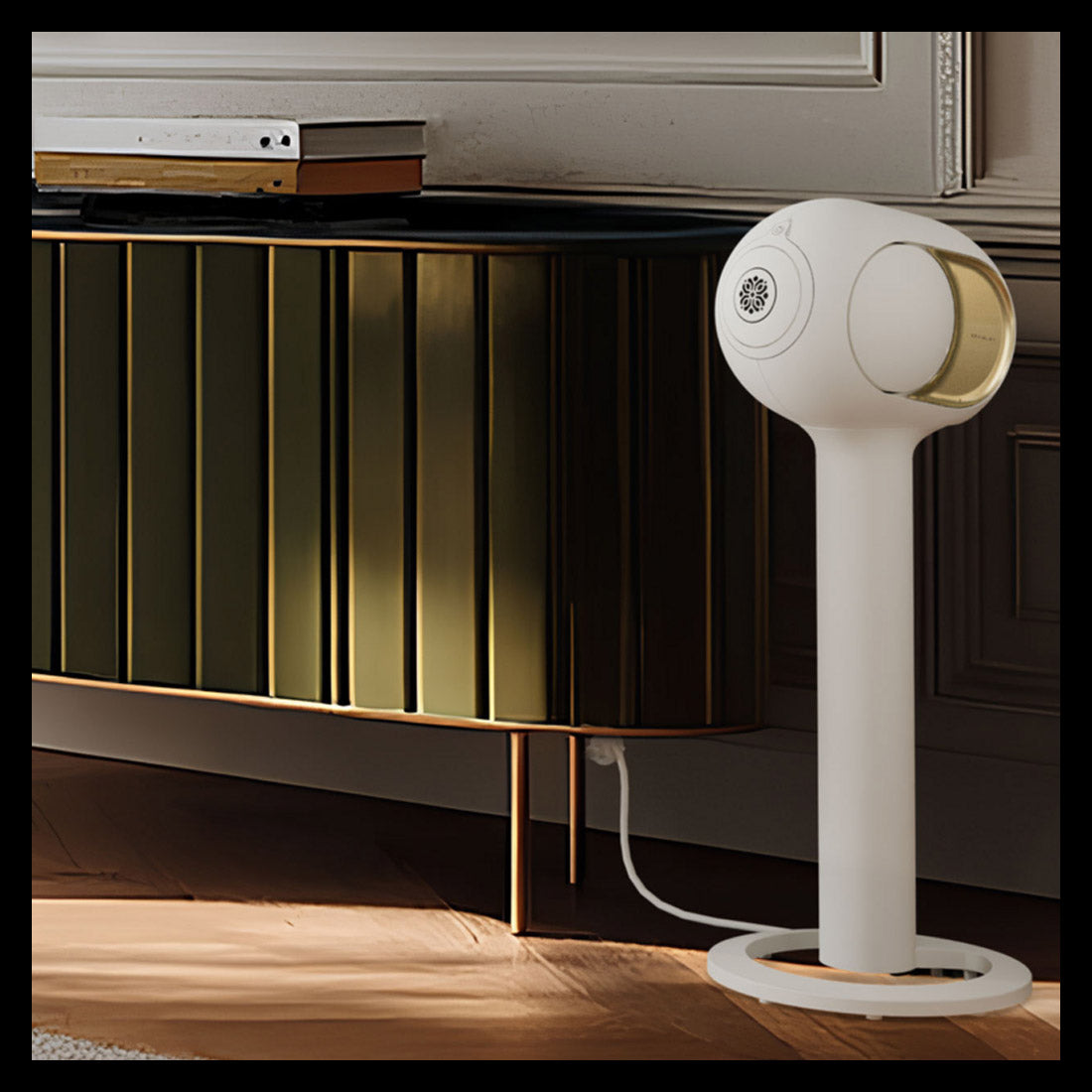 Sa base stable et son plateau supérieur parfaitement ajusté donnent l’impression que l’enceinte flotte légèrement, créant un véritable effet de mise en scène dans la pièce.