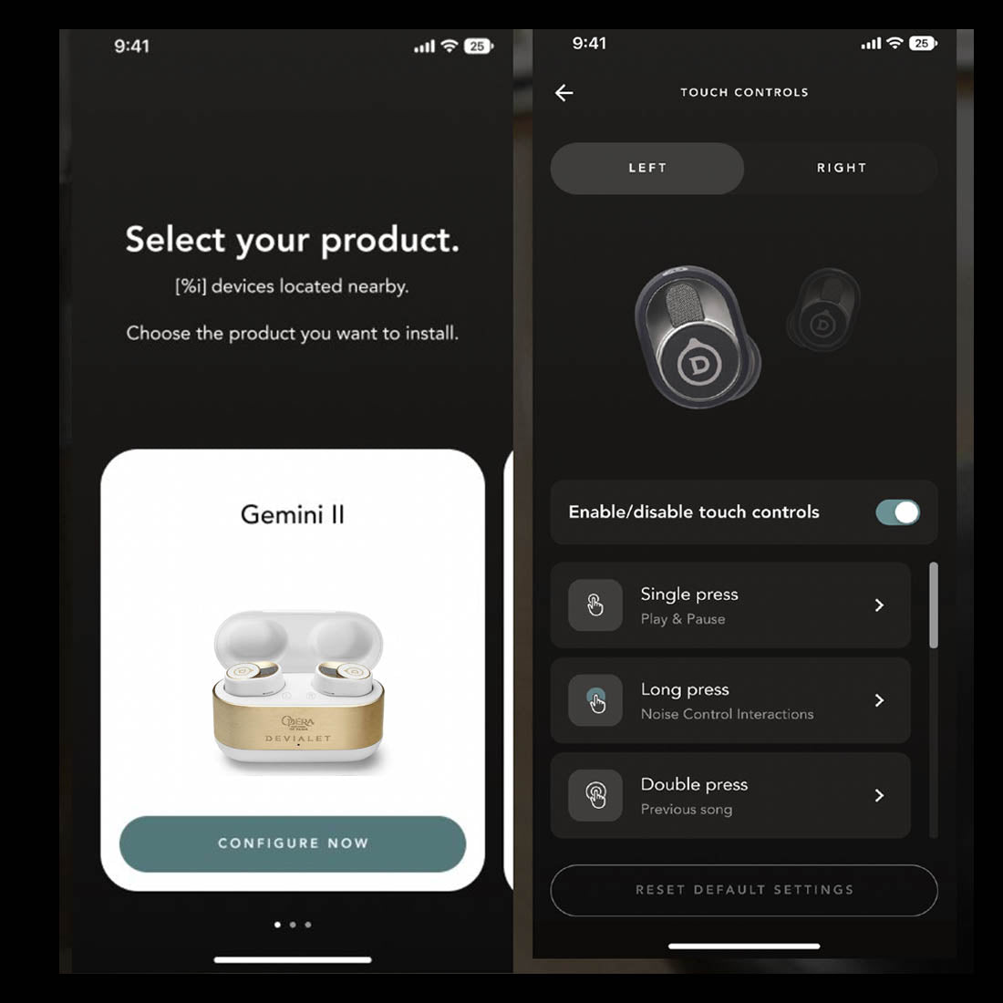 Téléchargez l'application Devialet Gemini, définissez vos paramètres et profitez d’une expérience personnalisée.