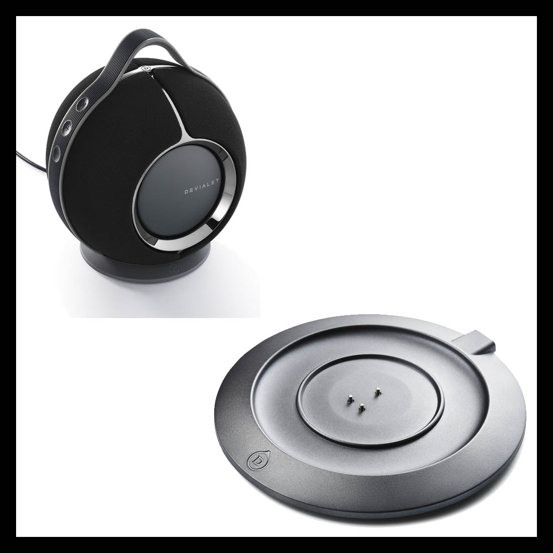La station de charge sans fil Devialet Mania Station accompagne cette enceinte, permettant une recharge facile et rapide.