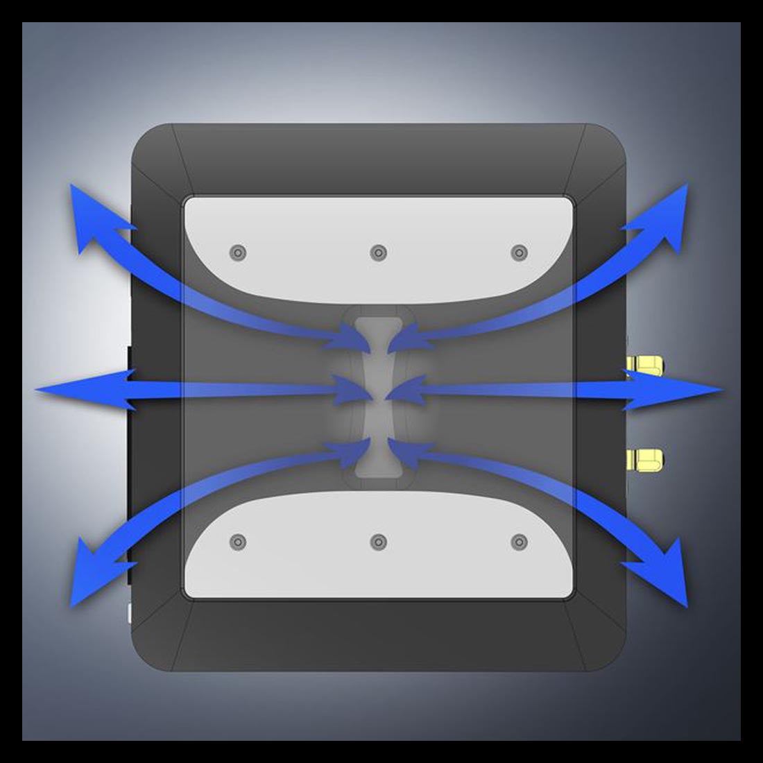 Le système de port ADS (Bidirectionnel Aero-Dynamic Slot) permet un flux d’air optimal à travers des évents latéraux, réduisant le bruit et les vibrations.