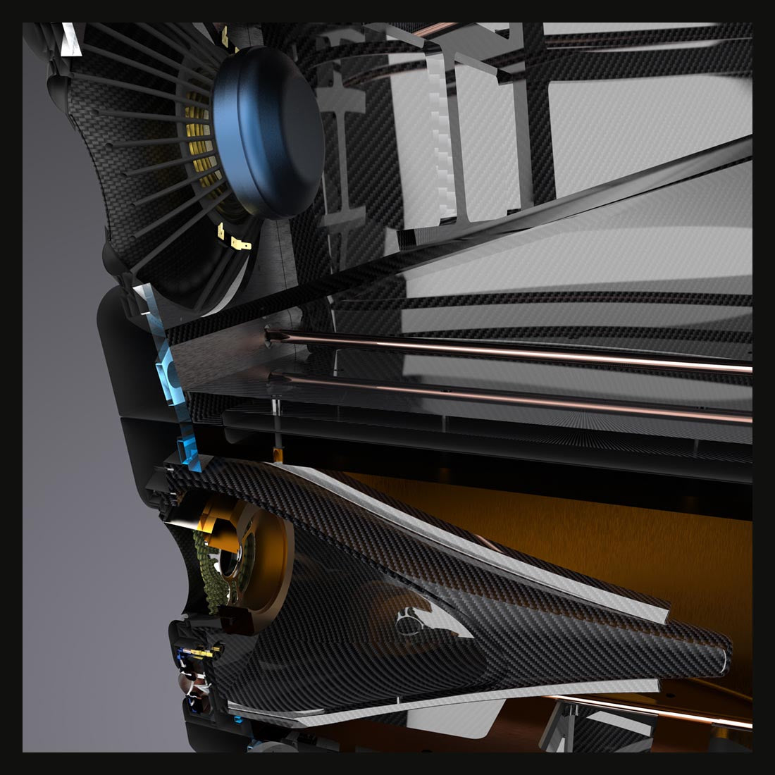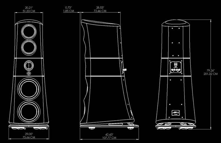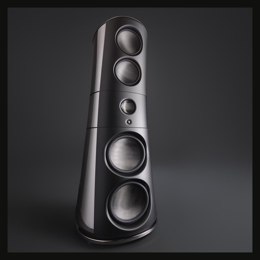 Ce système à quatre voies et six haut-parleurs, au format colonne, présente le premier coffret d'enceinte au monde à combiner des revêtements intérieurs et extérieurs en fibre de carbone avec un noyau révolutionnaire en nid d'abeille d'aluminium.