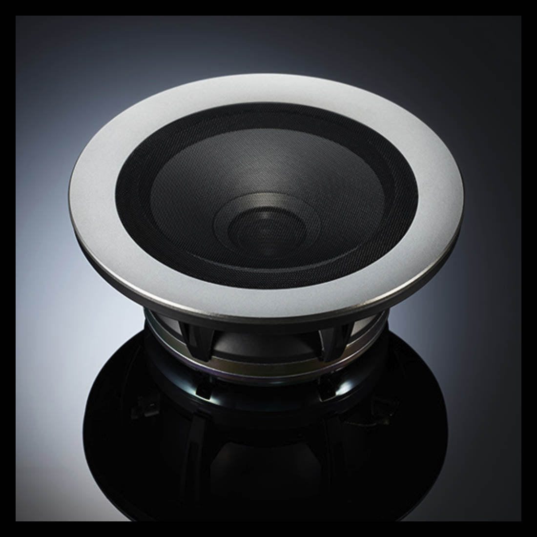 Les woofers utilisent un diaphragme composite de deuxième génération composé de cinq couches de tissu aramide tissé et non tissé.