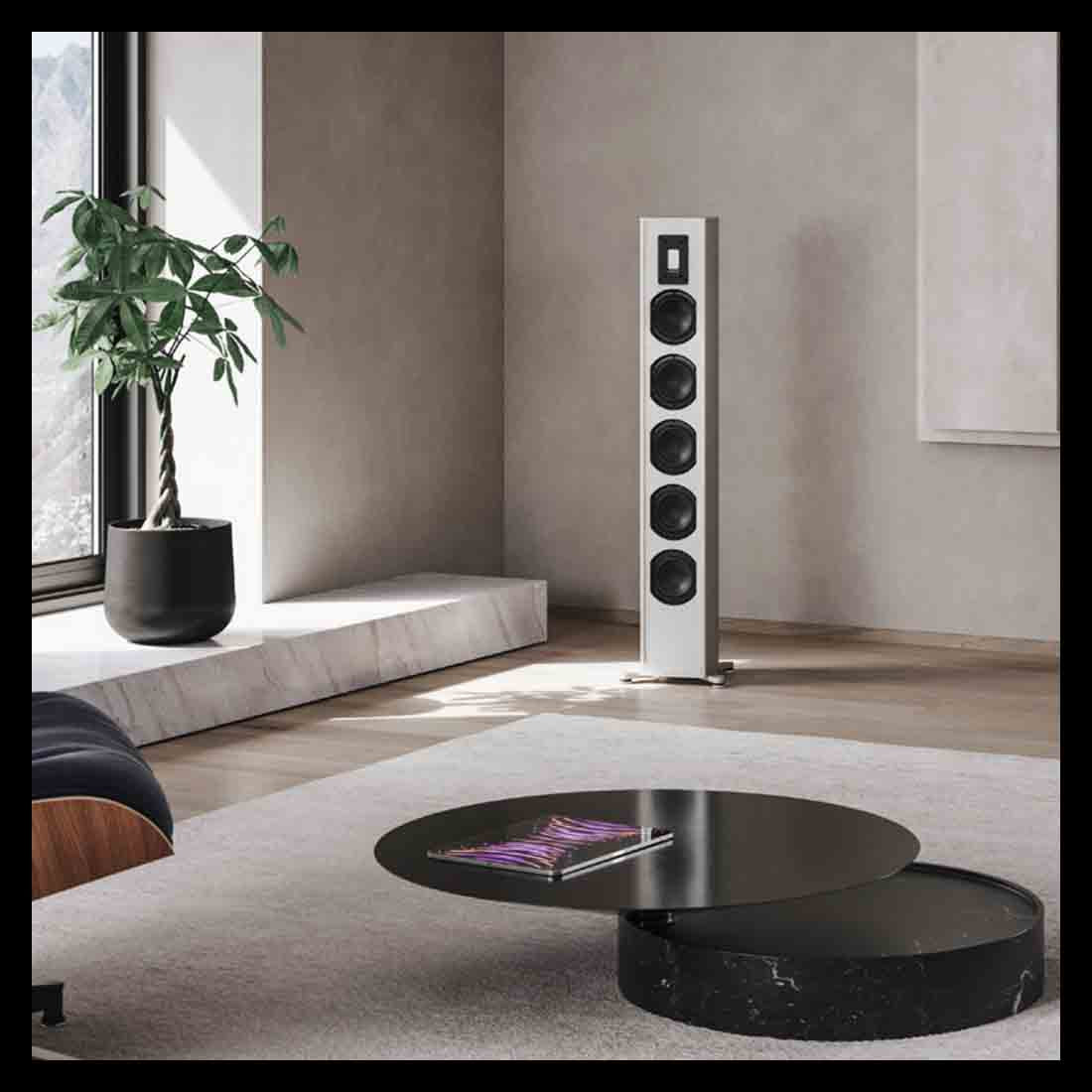 les enceintes Piega Premium 501 Wireless Gen2 arborent un design minimaliste et élégant qui s'intègre parfaitement dans n'importe quel environnement.