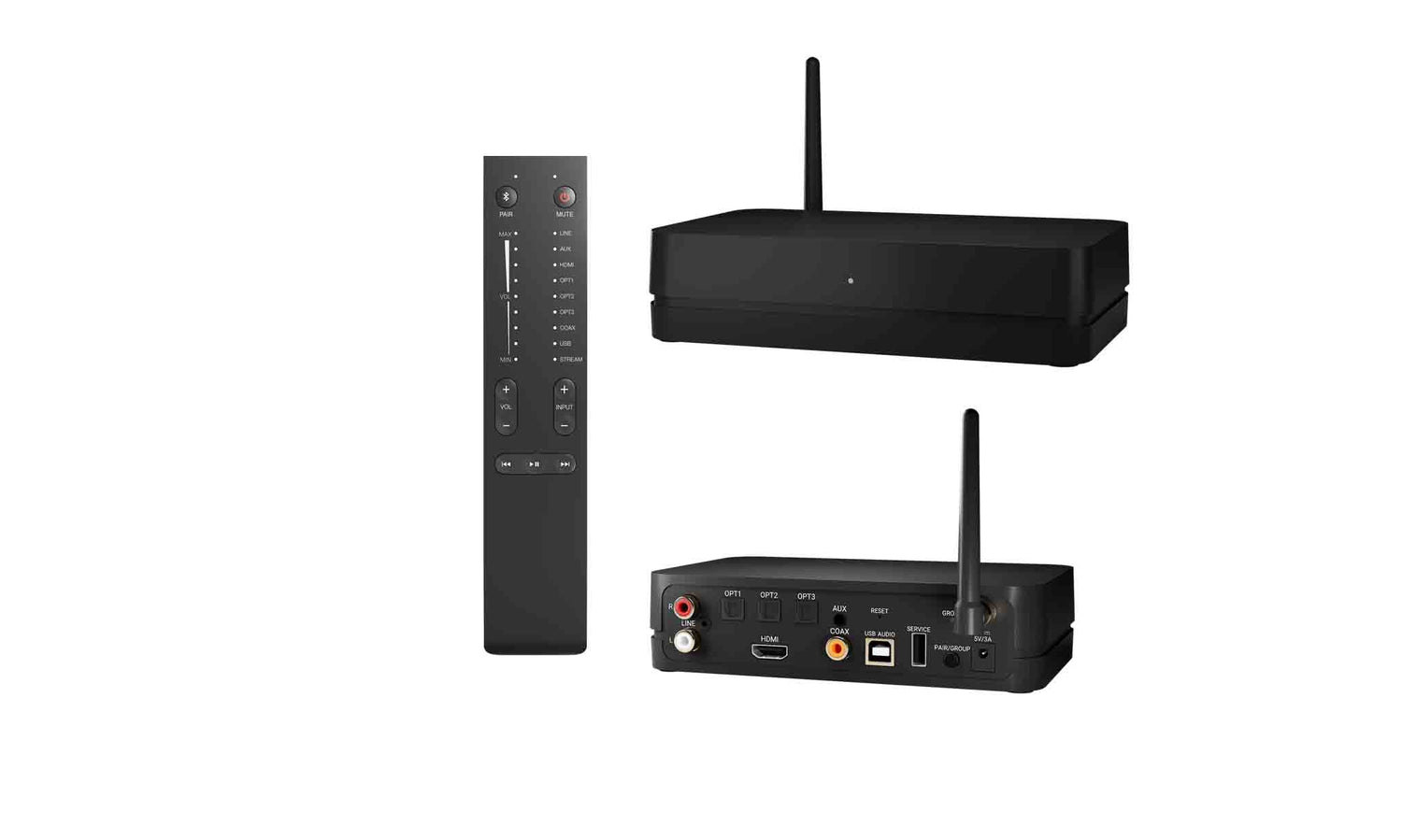 Il fonctionne comme une interface entre vos composants hi-fi et les enceintes Premium Wireless, permettant une commande intuitive via une télécommande sans fil.