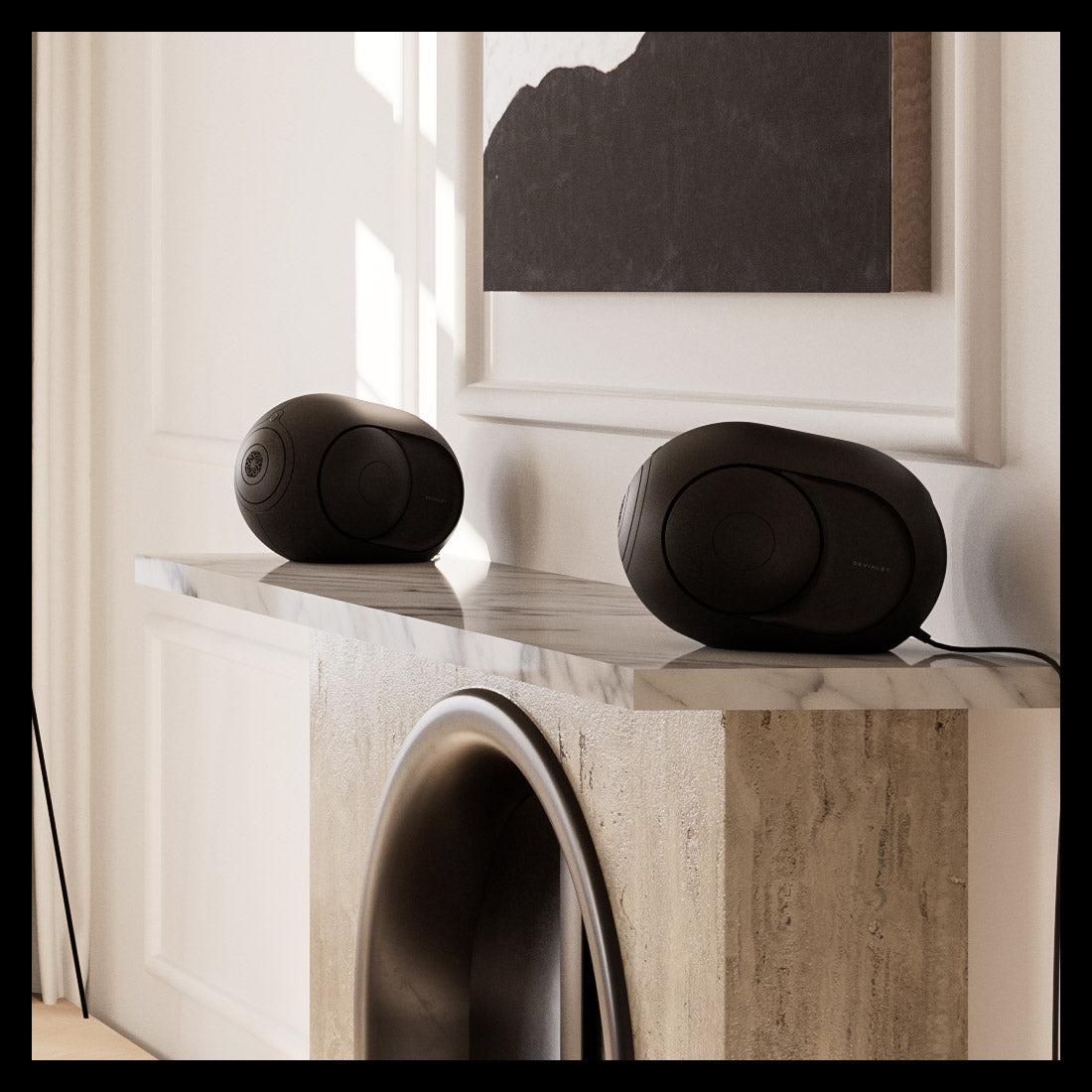 Son design harmonieusement minimaliste reflète fidèlement l'esthétique caractéristique de Devialet, avec des lignes délicates qui ne manqueront pas de captiver votre regard.
