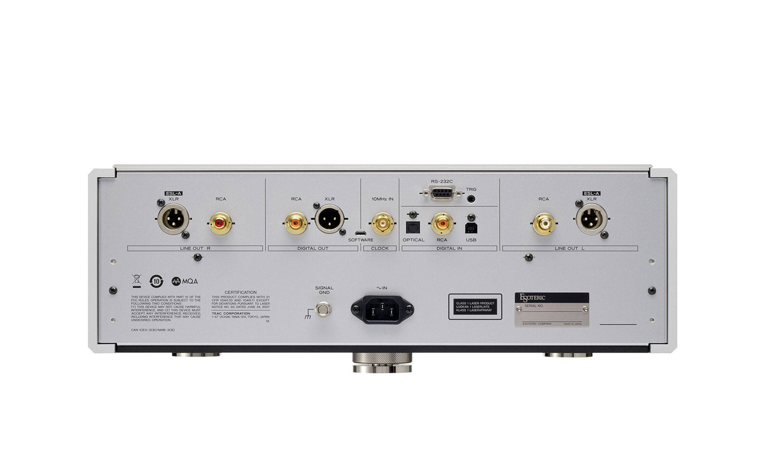 Pour exploiter pleinement cette performance, Esoteric a développé un nouveau protocole de conversion : le Master Sound Discrete DAC, fonctionnant en double mono et intégrant 32 composants discrets par canal (VCXO II, condensateurs, résistances, circuits logiques, etc.).