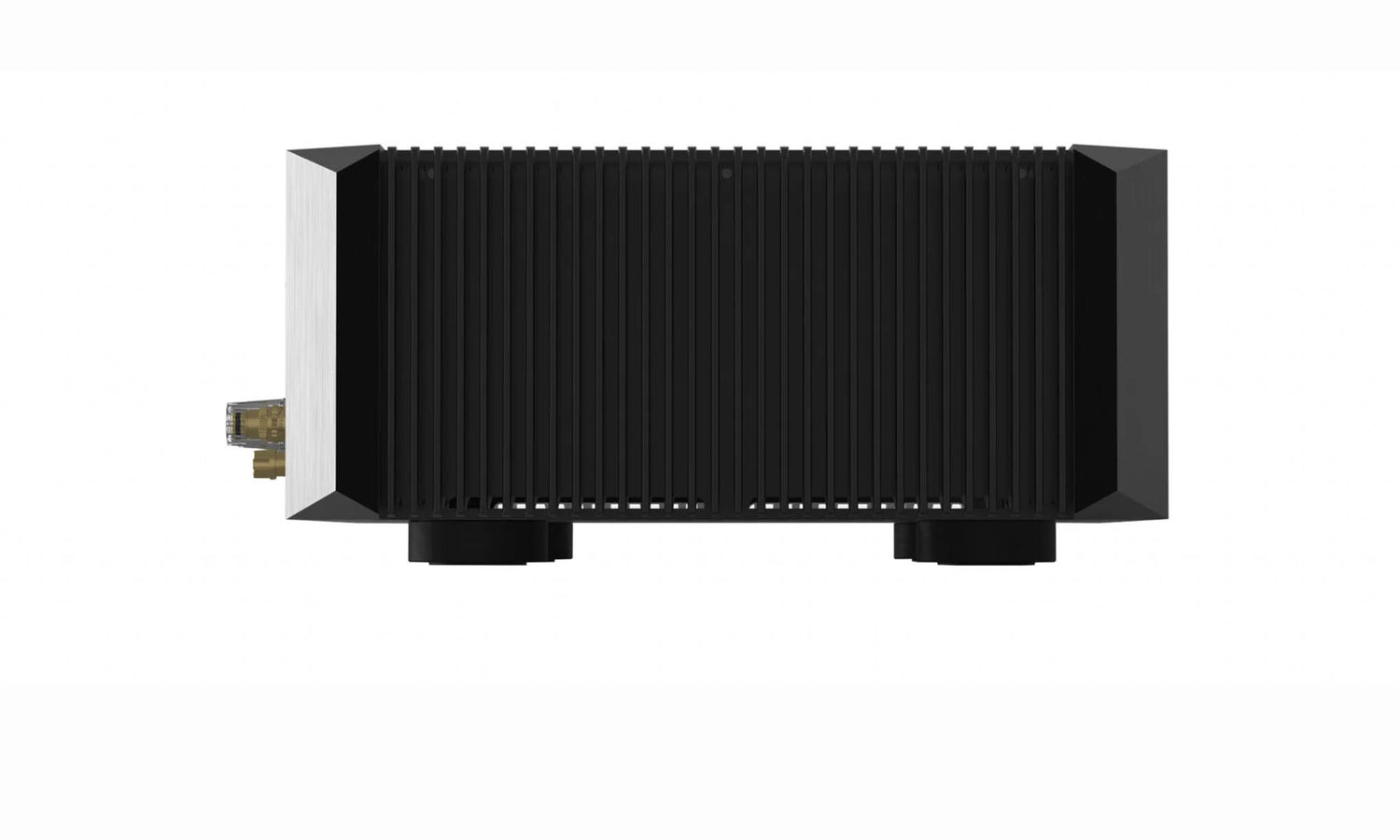 Les dissipateurs thermiques en aluminium sur les flancs assurent un refroidissement entièrement passif, permettant à l'amplificateur de fonctionner à pleine puissance sans risque de surchauffe.