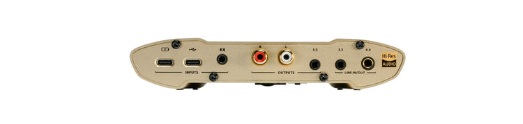 La connectique du iDSD Valkyrie est particulièrement complète et polyvalente, avec un port USB-C pour les données comme pour la charge, une entrée S/PDIF optique ou coaxiale, ainsi qu’une entrée ligne analogique et des sorties RCA ou symétriques.