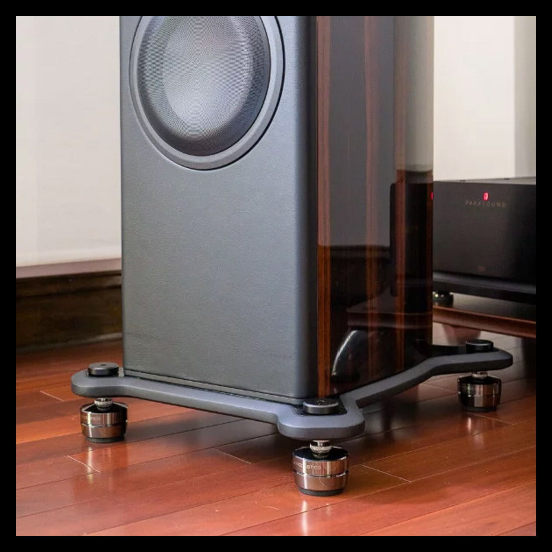 - Isolation des vibrations : Les enceintes et caissons de basses génèrent des vibrations qui peuvent se transmettre au sol ou aux murs, perturbant la reproduction sonore et créant des bruits parasites. Les absorbeurs aident à isoler ces vibrations.