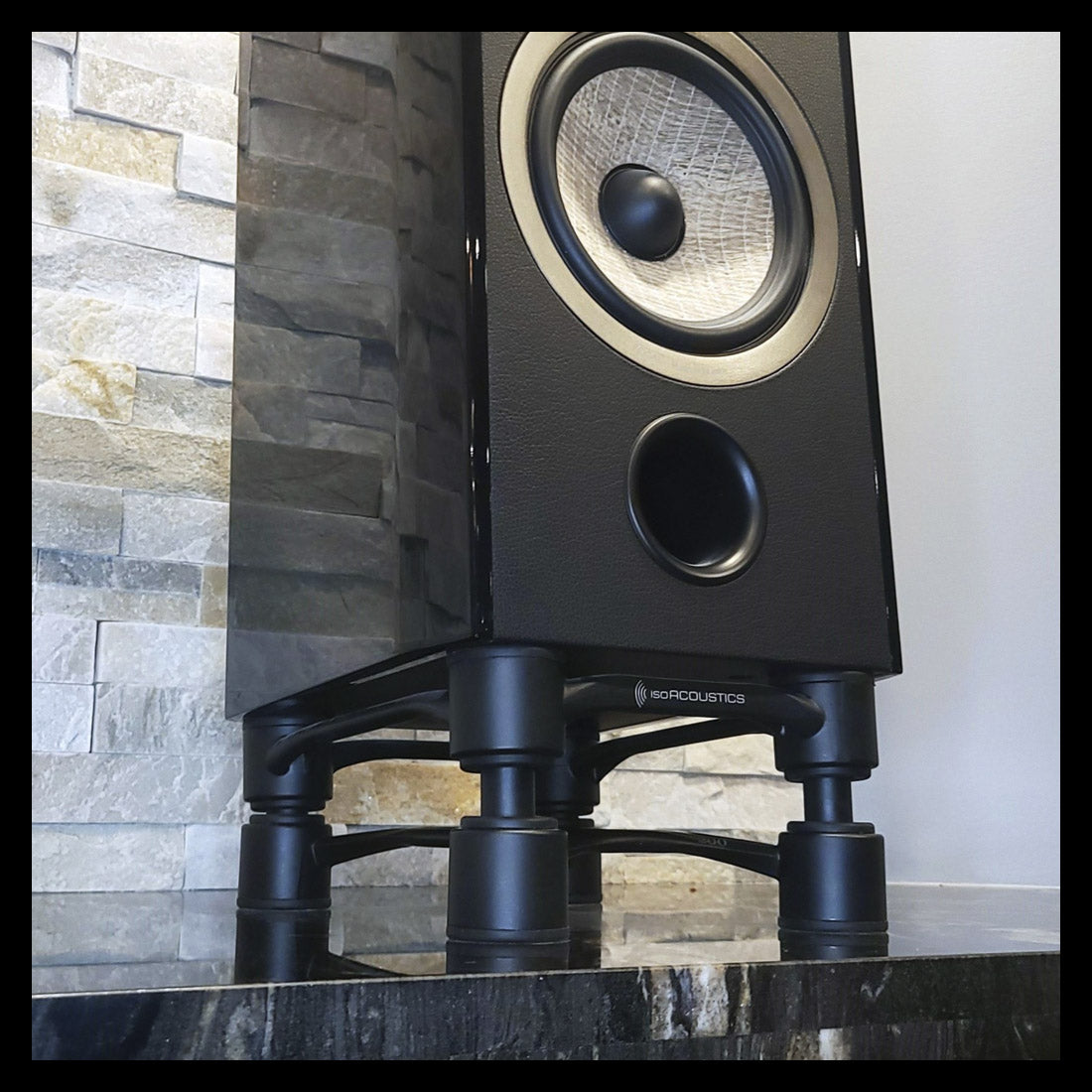 Les pieds Aperta offrent non seulement une isolation acoustique mais également une stabilité accrue pour vos enceintes.