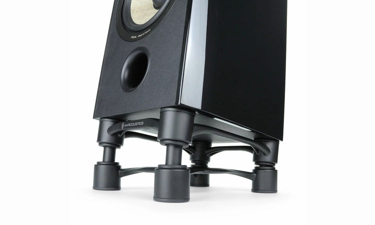 Les absorbeurs acoustiques Aperta d'IsoAcoustics sont spécialement conçus pour optimiser les performances des enceintes bibliothèque, colonnes, centrales et caissons de basses.