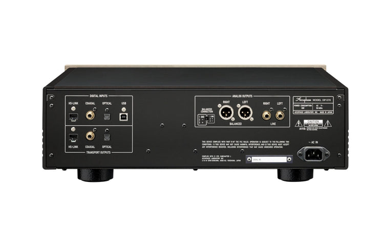 Le lecteur SA-CD/CD DP-570 à haute rigidité est monté sur une plaque inférieure à trois couches avec des propriétés exceptionnelles de réduction des vibrations, le tout soutenu par des isolateurs en fonte de carbone élevé.