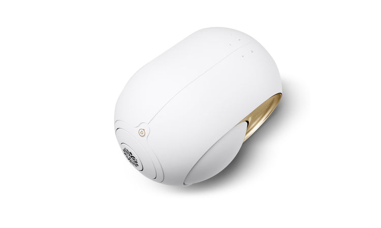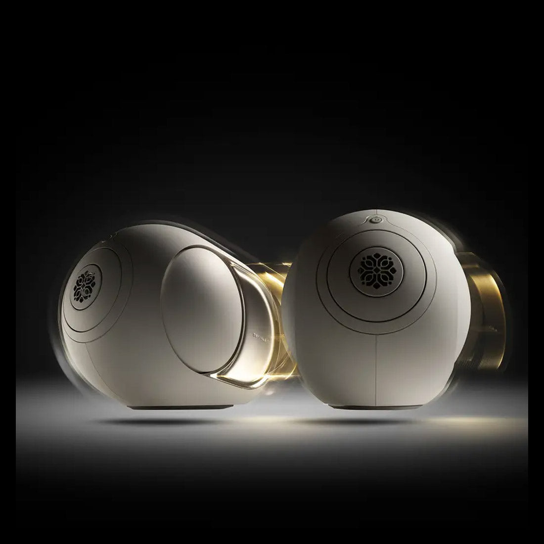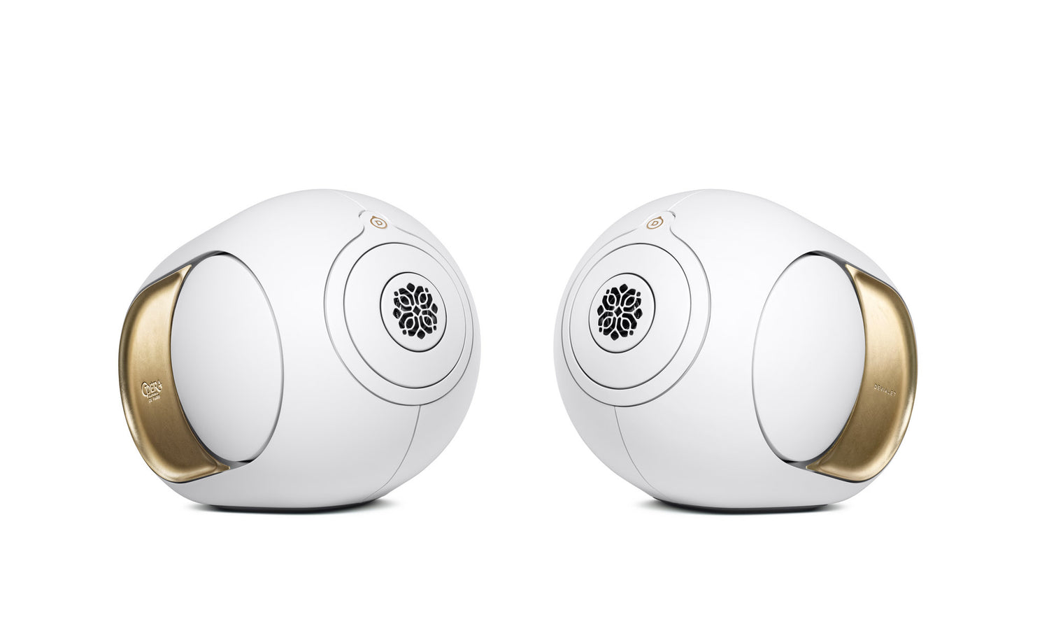 Dans son édition Opéra de Paris, l’enceinte Devialet Phantom arbore un blanc mat RAL 9016, rehaussé de flasques en feuille d’or Moon Gold, appliquées à la main par les artisans des Ateliers Gohard.