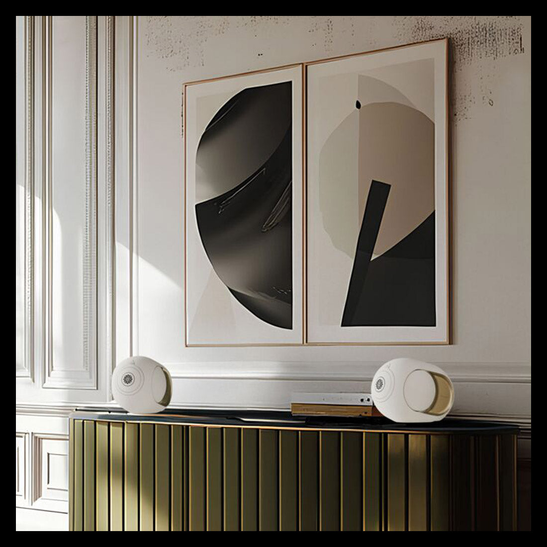 En configuration stéréo, deux enceintes Devialet Phantom s’associent pour élargir la scène sonore et offrir une immersion totale, tout en conservant finesse et équilibre acoustique.