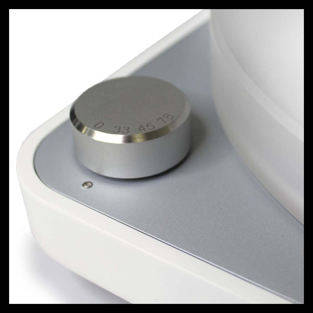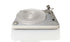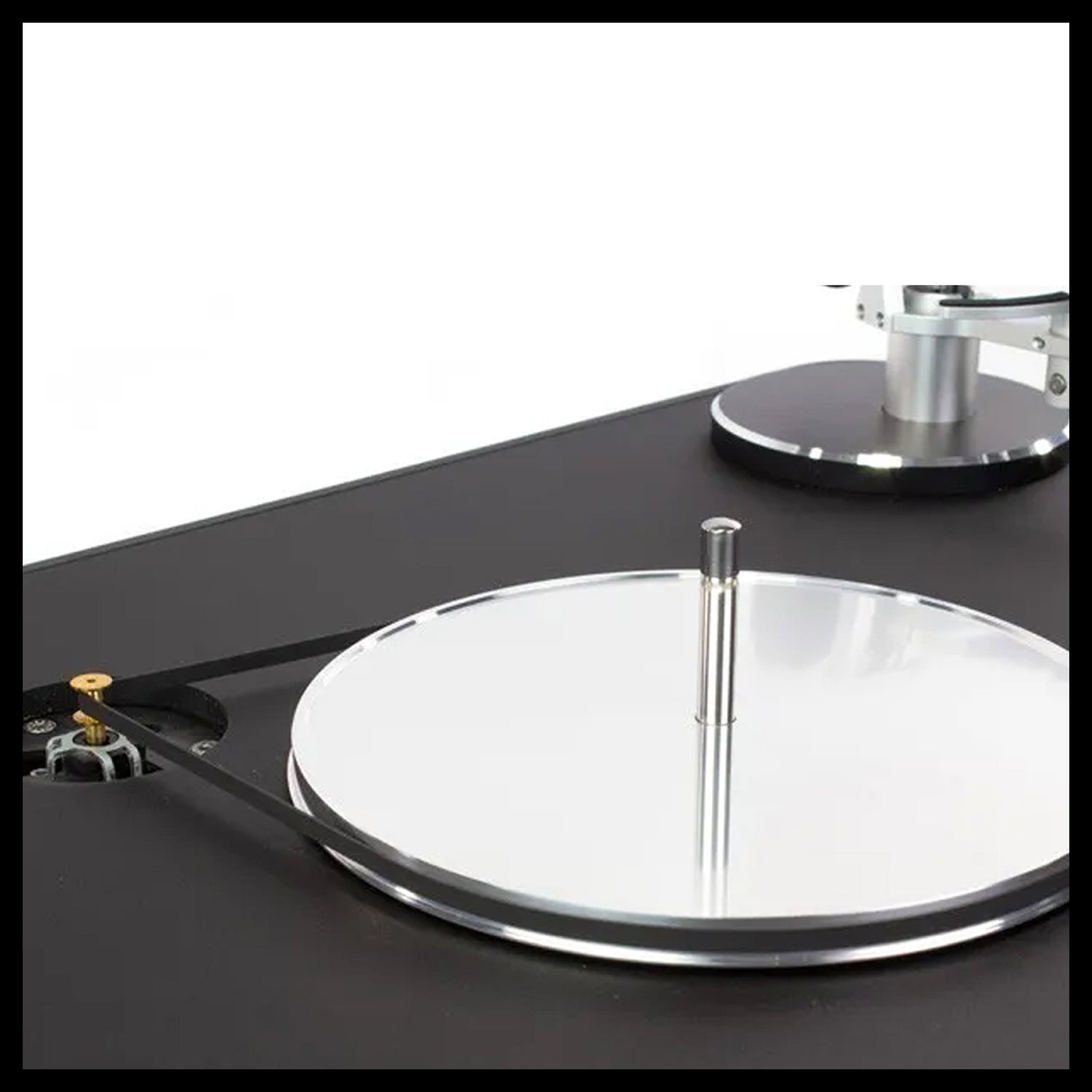 Plateau massif en POM (polyoxyméthylène) ou acrylique équilibré dynamiquement avec moteur à entraînement par courroie, une alimentation externe, roulement à faible bruit et un axe de plateau en bronze.