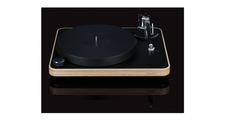 Des lignes courbes, sobres et épurées, un plateau en bois massif où repose un bras de lecture Satsfy en aluminium qui a fait ses preuves chez CLEARAUDIO.