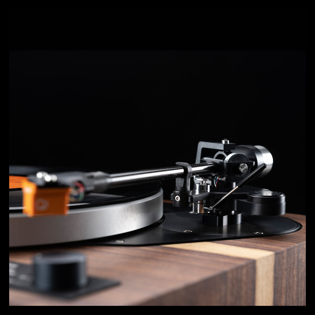 Chaque détail, du plateau en acrylique transparent au bras de lecture en fibre de carbone, témoigne de l'attention méticuleuse portée à la qualité de fabrication et à l'esthétique de l'appareil.