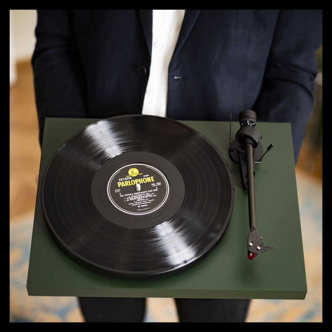 Une platine vinyle livrée sur un plateau