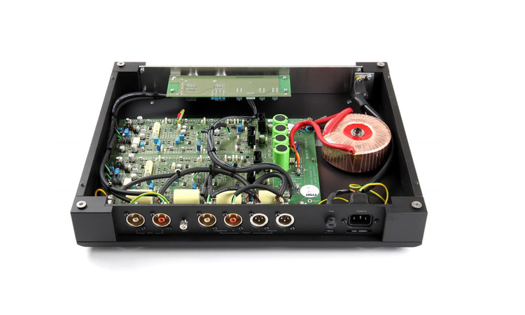 Pour maximiser la marge, l'Aura dispose d'une tension d'alimentation 60 % plus élevée que celle que l'on trouve normalement dans un tel préamplificateur. Des condensateurs en polypropylène de très haute qualité ont été utilisés dans le chemin du signal.