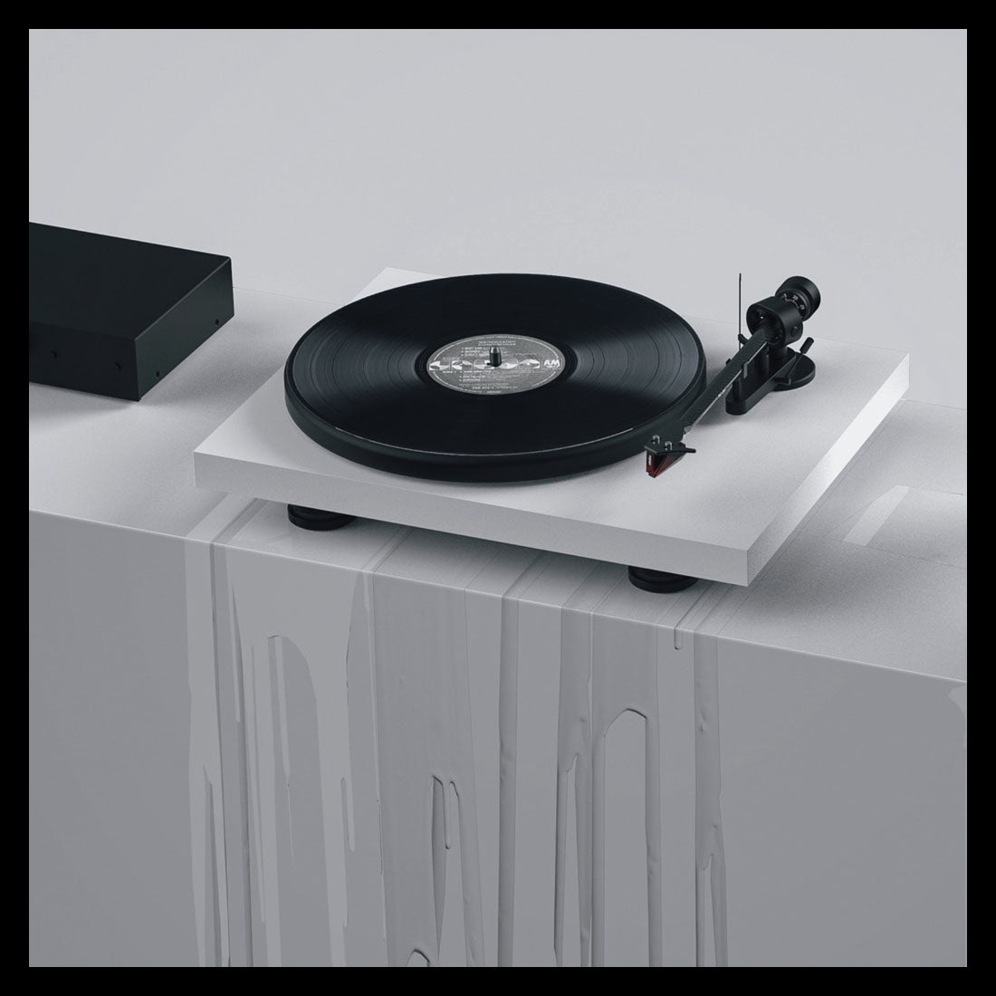 Une platine vinyle livrée sur un plateau