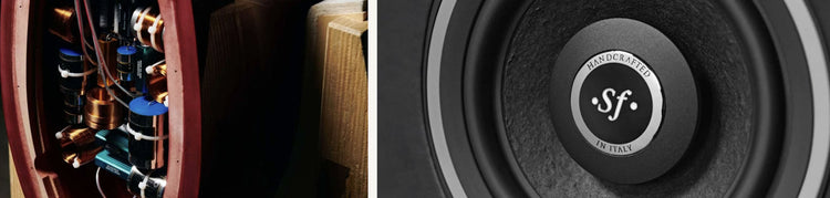 Les boomers en aluminium/magnésium des enceintes Sonus Faber délivrent des graves tendus et rapides, pendant que le médium en fibres de cellulose reproduit les voix avec un naturel saisissant.