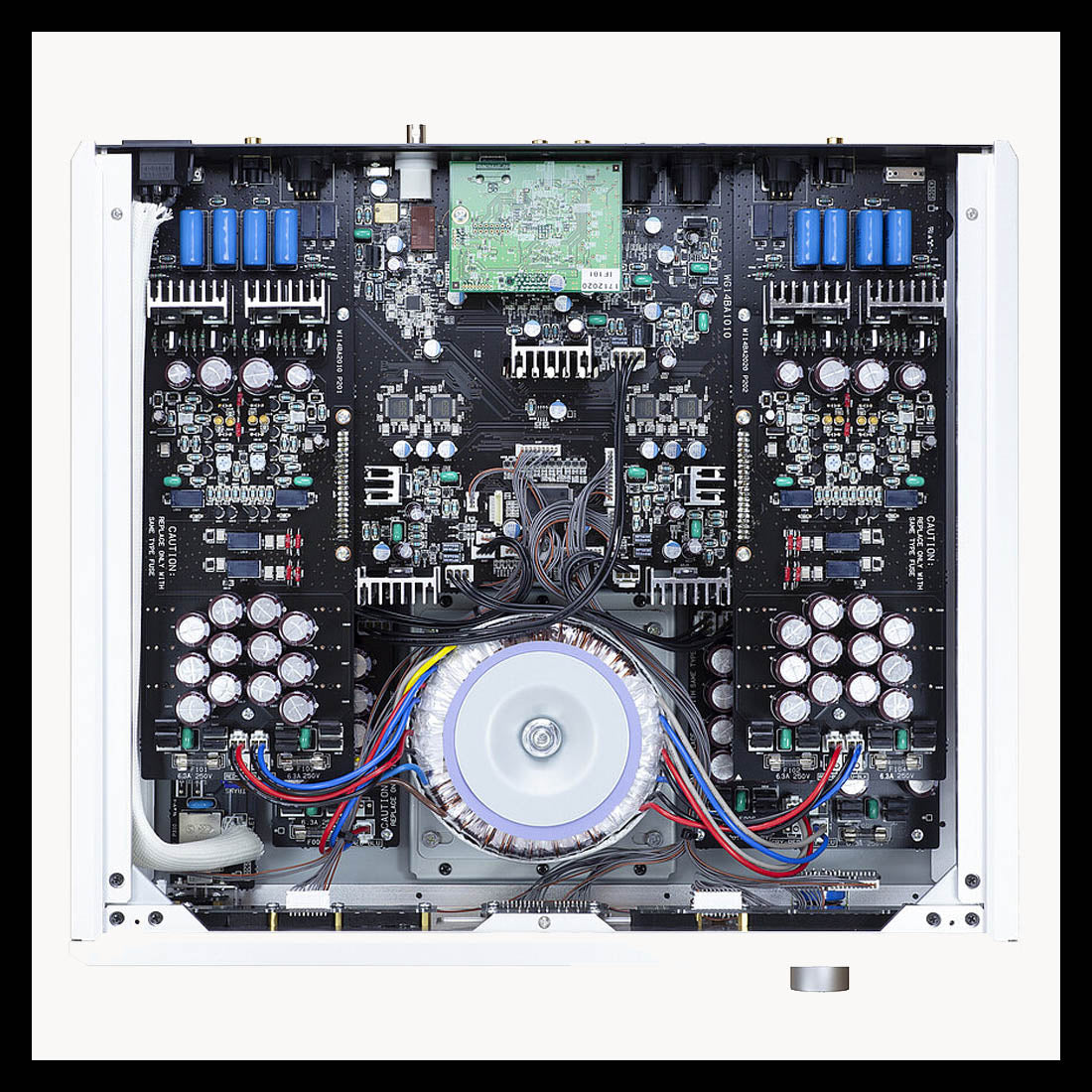 Son transformateur torique bifilaire de 400 VA, doté de huit enroulements secondaires, assure une réserve de courant considérable, comparable à celle d’un amplificateur de puissance.