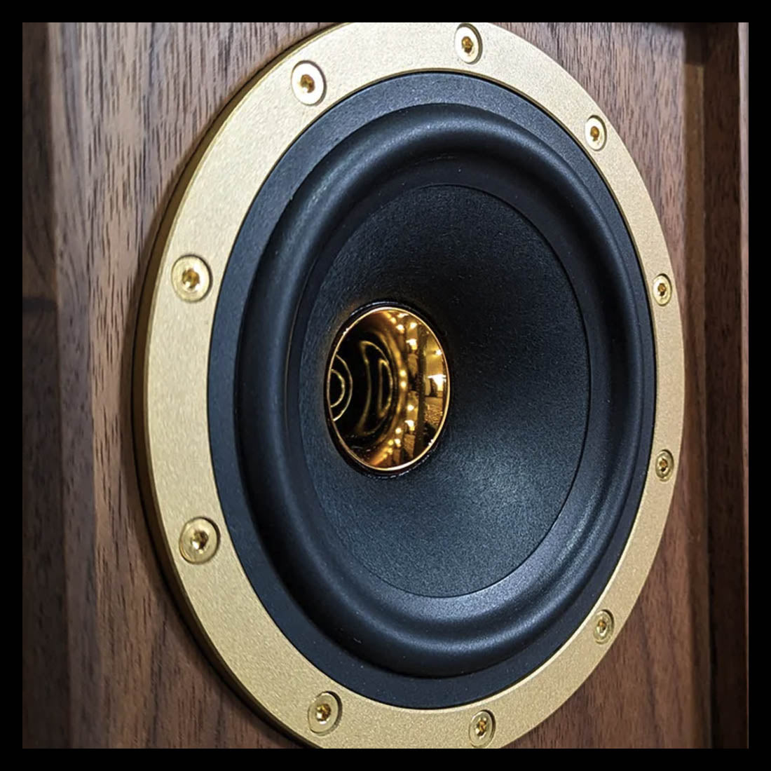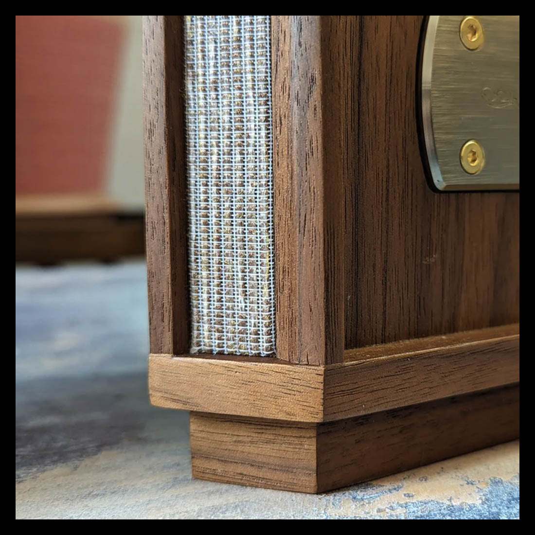 L’armoire de cette enceinte est fabriquée à la main en placage de noyer huilé, ce qui lui confère une esthétique intemporelle.